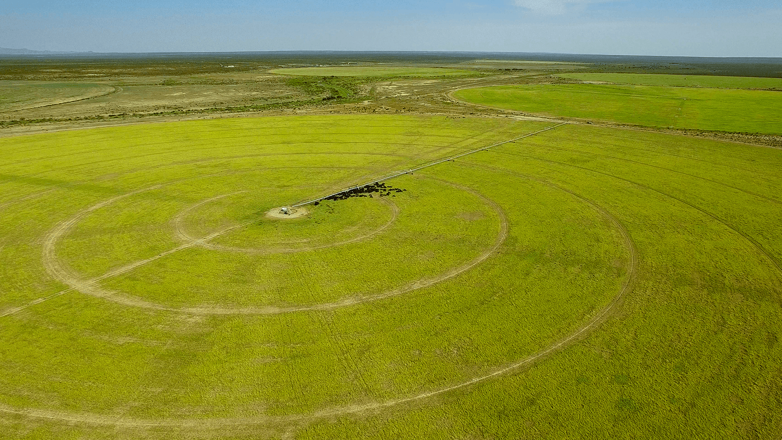 Center-pivot irrigation growing forage for the La Escalera cattle