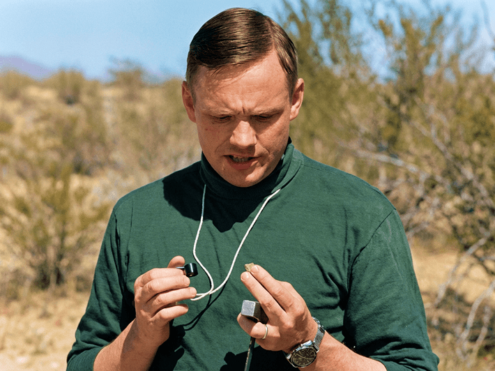 Neil Armstrong examines a sample