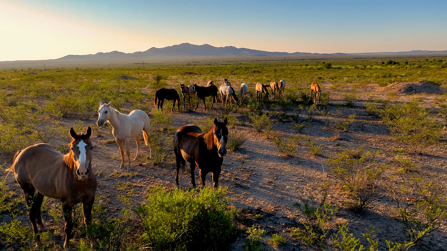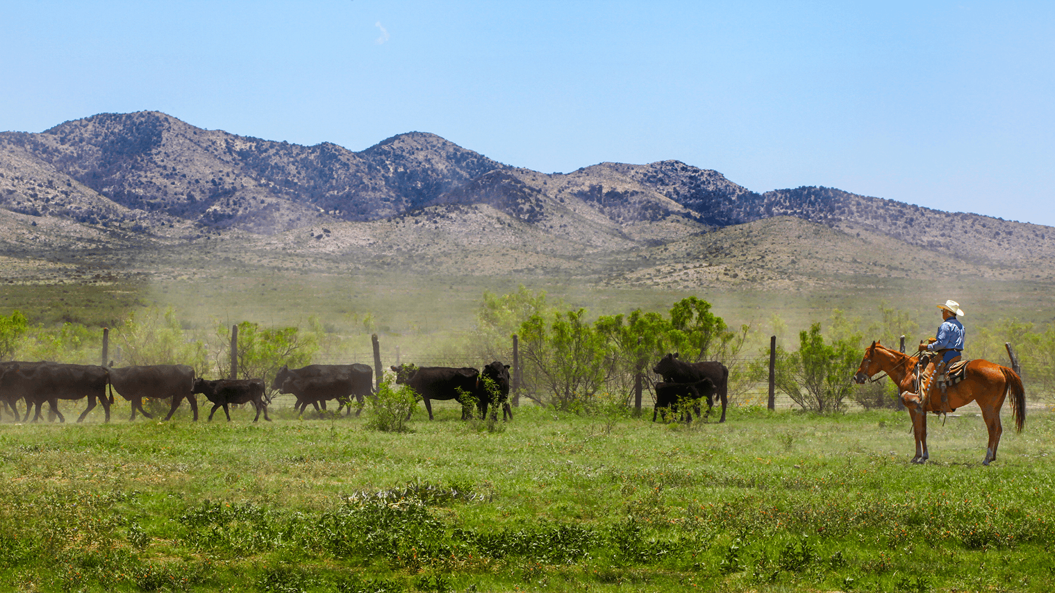 South of Fort Stockton, La Escalera stretches across Pecos and Brewster counties in one unbroken piece of land. The ranch has been in the Lyda family since 1992 and is run with a simple approach: take care of the cattle, take care of the land, and leave things better than you found them. Cowboys work horseback and helicopters are used to help gather cattle across the wide country.